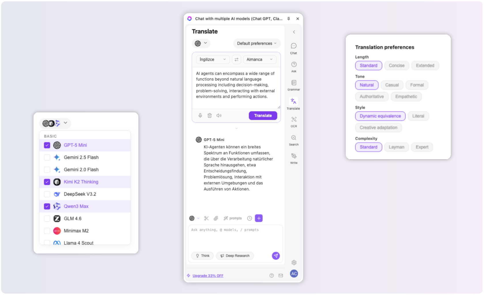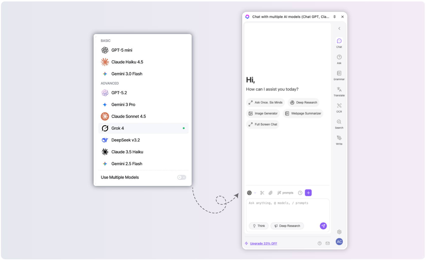 Switch instantly between the world's most advanced AI models like GPT-5.4, Claude 4.6 and Gemini 3.1. Unify all models in your browser's side panel without wasting time across different platforms. Compare responses in real time for your complex tasks and choose the model that delivers the most optimized solution for your project in seconds.